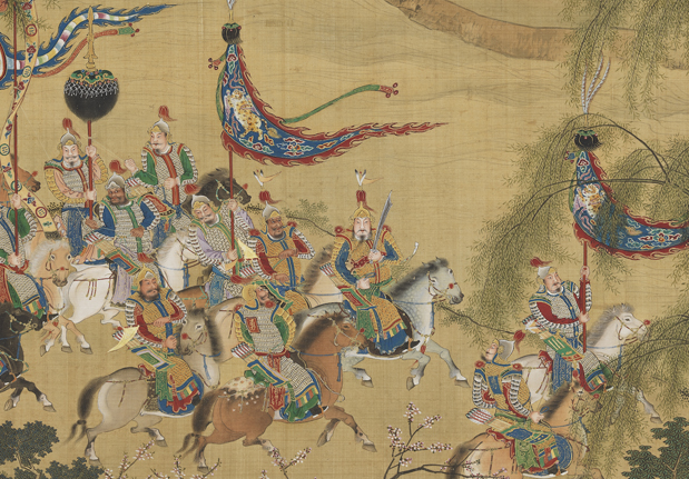 The Painting of Entering the Forbidden City depicts the emperor returning to the palace by water after leaving the capital to visit the mausoleum. This high headed scroll with a length of more than 3000 cm depicts more than 900 gorgeous guards and attendants holding various kinds of honor guards. Through the unimaginable grand pomp, it shows the incomparable imperial momentum during the retreat. This exhibition will show the whole volume from left to right in three times.